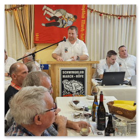 Im Wahlgeschäft gab es zwei Änderungen. Der abtretende Aktuar Ruedi Beeler wurde durch Lukas Bürgler ersetzt und Kampfrichterchef Markus Brunner fand in der Person von Adi Tschümperlin einen geeigneten Nachfolger. Präsident Schelbert präsentierte den Delegierten zwei offizielle Anträge. Die neuen Beschickungsrichtlinien für Kranzfeste innerhalb des ISV und der Unterstützungsbeitrag von 5000.- für den Neubau der Schwinghalle Schübelbach wurden ohne Wortmeldungen einstimmig durchgewunken. Nachdem keine weiteren Wortmeldungen kamen, schloss Rene Schelbert die ruhige DV um 22,45 Uhr und die Anwesenden frönten dem kameradschaftlichen Beisammensein noch eine geraume Zeit.