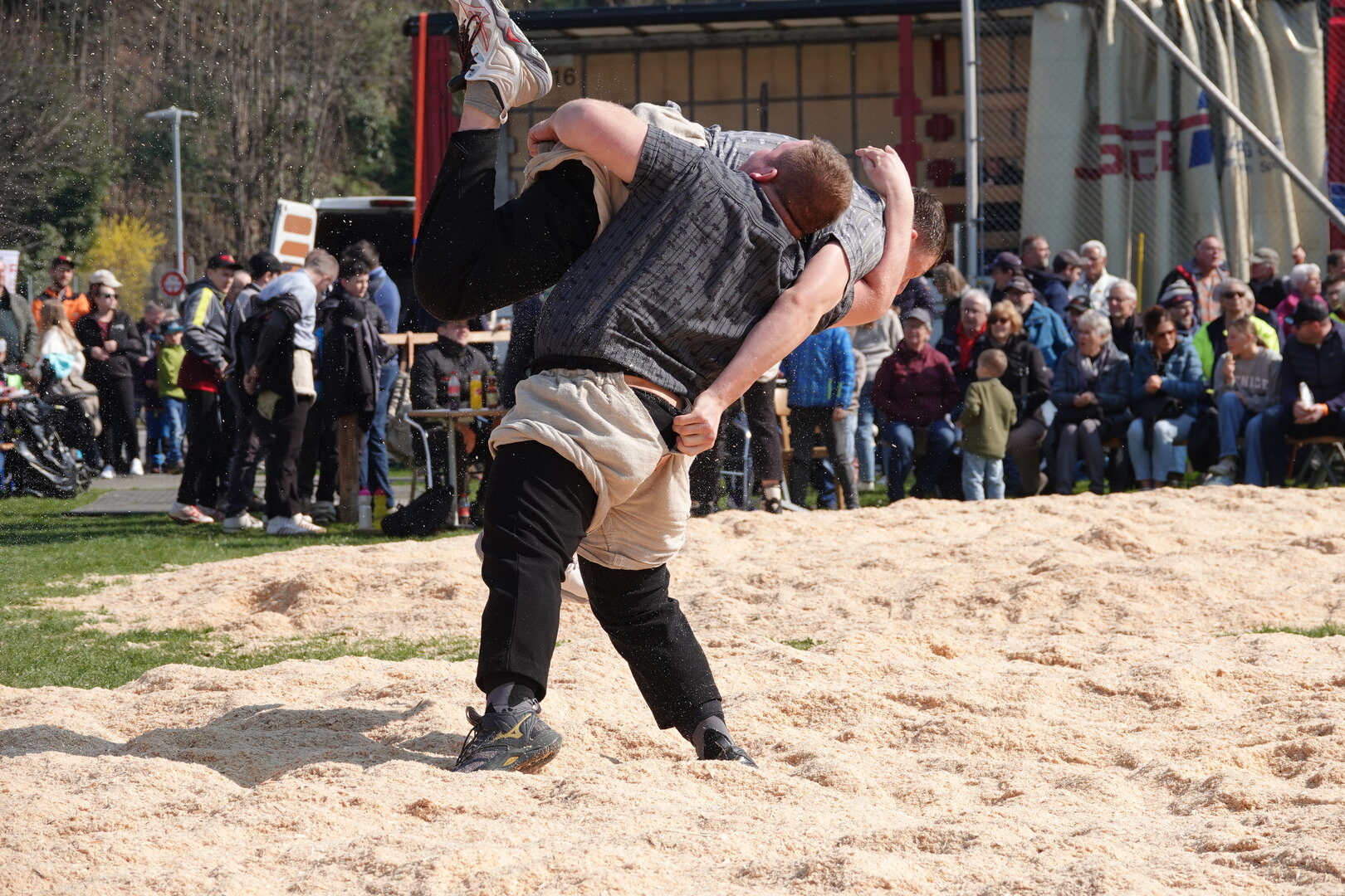Nick Alpiger bezwingt Lukas Heinzer nach 3:14 Minuten mit Stich am Frühjahrsschwinget Oberarth